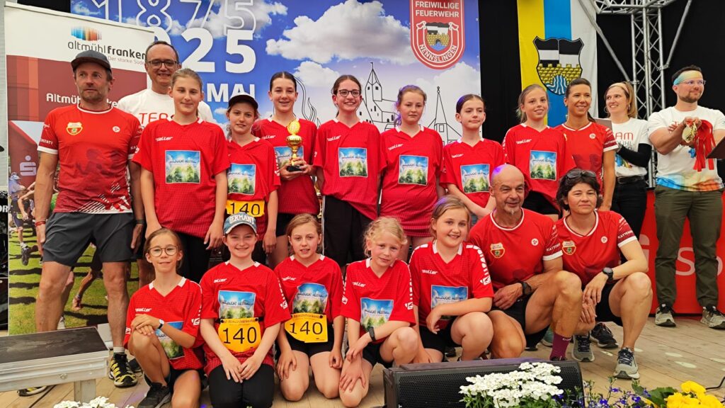 Der 40. Altmühlfranken-Lauf fand dieses Jahr rund um Nennslingen statt und lockte wieder zahlreiche Sportbegeistere an. Selbstverständlich war auch unsere Eintracht wieder mit einigen Mannschaften vertreten. Den größten Erfolg konnte die Mädchen-Schülermannschaft (bis 13 Jahre) erlaufen, und zwar den 1. Platz mit einer Zeit von 4:13:41 Stunden!