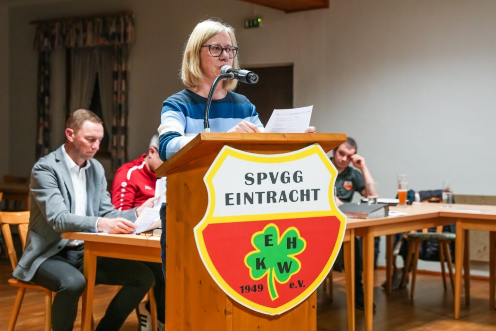 Für die Fußballdamen verlas Julia Rührer den Bericht. Diese sind nach dem Aufstieg 2024 in der Bezirksliga Mittelfranken Süd aktiv. Dort überwinterte man auf dem 5. Platz. Nach einem 3-tägigen „Wintertrainingslager“ beim Skifahren im Radstadt/Zauchensee und einem Vorbereitungsspielen begann Mitte März eine für die Eintracht sehr erfolgreiche Rückrunde. Mit 8 Siegen und lediglich 3 Niederlagen konnten 2 Plätze gutmacht werden, und die Damen belegten zum Saisonende als Aufsteiger einen hervorragenden 3. Tabellenplatz in der 1. Bezirksliga-Saison. Somit war das Saisonziel Klassenerhalt, mehr als erfüllt. Torjägerin Laura Eder belegte mit 25 Treffern Platz 4 in der Torjägertabelle. Gleich im Anschluss an das letztes Saisonspiel am 07. Juni, war die Saisonabschlussfeier im Sportheim Kattenhochstatt. Am 25. Juli 2025 begann dann schon wieder die Vorbereitung auf die 2. Bezirksliga-Saison. Mit einem Testspiel gegen FC Kalbensteinberg/Absberg und einem 3-tägigen Trainingslager in Kipfenberg wurde der Grundstock für die neue Saison gelegt. Noch am gleichen Tag der Rückkehr, war der Bezirksoberligist TSV Katzwang in der 2. Runde des Bezirkspokals zu Gast. Nach regulärer Spielzeit stand es 1:1, im anschließenden Elfmeterschießen konnten die Eintracht-Damen das Spiel mit 5:4 für sich entscheiden und ins Viertelfinale einziehen. Dieses Viertelfinale fand am 01.11. in Kattenhochstatt statt, als Gegner wurde mit der DJK Fiegenstall erneut ein Bezirksoberligist zugelost. Dieses Spiel endete 2:2 nach regulärer Spielzeit, im Elfmeterschießen behielt die Eintracht mit 6:5 wiederum die Oberhand und steht somit im Halbfinale des Bezirkspokals. Dieses wird am Ostermontag stattfinden, zu Hause gegen den TV Büchenbach (auch wieder BOL). Am 06. September startete die neue Meisterschafts-Runde. Nach einem holprigen Start mit 2 Niederlagen, folgten 7 Spiele ohne Niederlage, mit 6 Siegen, 1x Unentschieden. Mit einem Spiel weniger, das witterungsbedingt ausgefallen ist, ging es auf dem 3. Tabellenplatz in die Winterpause. Julia Rührer wies auch nochmal darauf hin, dass neue Spielerinnen jederzeit herzlich willkommen sind. Der Kader ist dünn es gibt immer wieder Ausfälle, auch durch Schwangerschaften. Mit einer Mannschaftsweihnachtsfeier ließen die Fußball-Damen das Jahr im Dezember ausklingen.