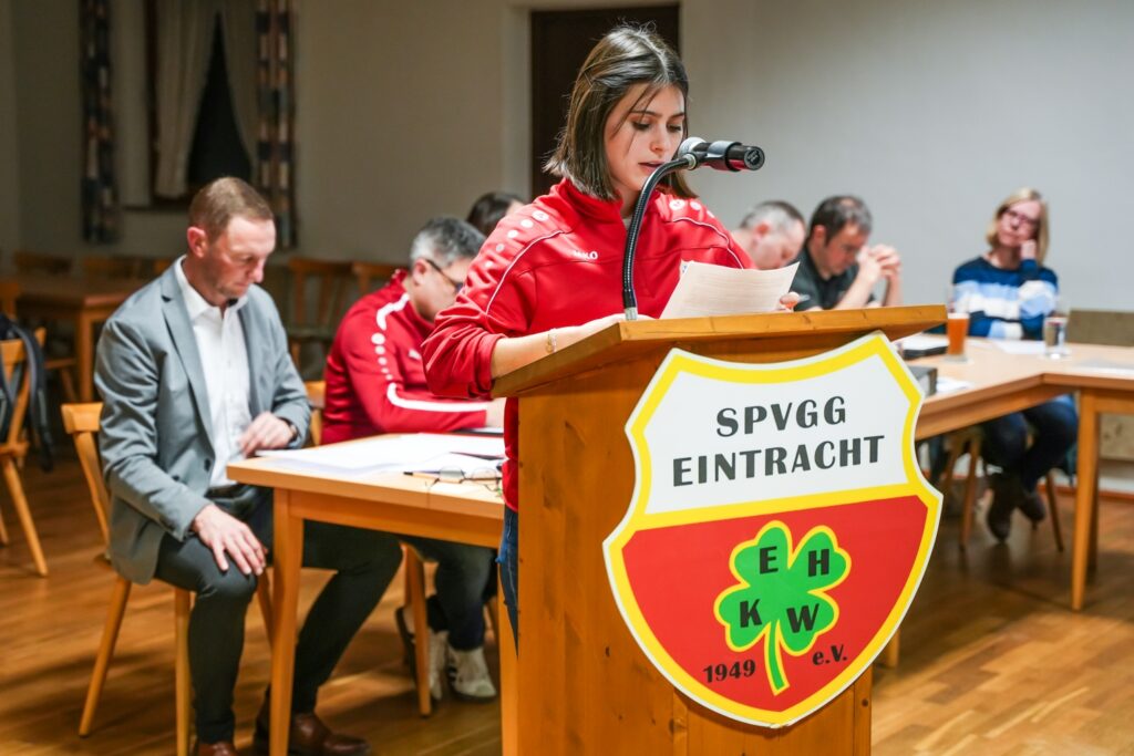 Für die Fußballjugend berichtete Jugendleiter Jörg Meißner über aktuell 14 Mannschaften im Spielbetrieb, die ab der U9 zusammen mit dem SV Alesheim und dem 1. FC Markt Berolzheim in Spielgemeinschaften aktiv sind. Die Reformen der Spielformen im Fußball schreiten immer mehr voran. Von Mini-Festivals (3 gegen 3) über 5 gegen 5 bei der U9, Kompaktfeld (9er) bei den Mädels und U13 bis hin zu Großfeld und Norwegermodellen ist alles dabei. Dies erfordert einen hohen Planungs- und Organisationsaufwand, sowie auch das Vorhalten von Trainingsmaterial. Offiziell sind es nun 4 verschiedene Ballgrößen und -gewichte, die in den unterschiedlichsten Jugendmannschaften zum Einsatz kommen. Um all diesen Mannschaften Woche für Woche einen geregelten Trainings- und Spielbetrieb zu ermöglichen, hat die Eintracht 18 Trainer und 3 Trainerinnen beschäftigt – alle komplett ehrenamtlich. Sportlich hob Meißner die Bezirksligameisterschaft der U13-Juniorinnen, sowie die U17-Junioren hervor, die lange um den BOL-Aufstieg mitgespielt haben.